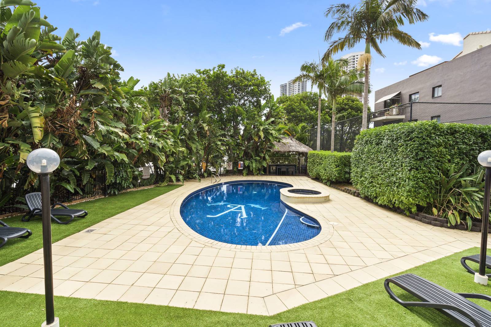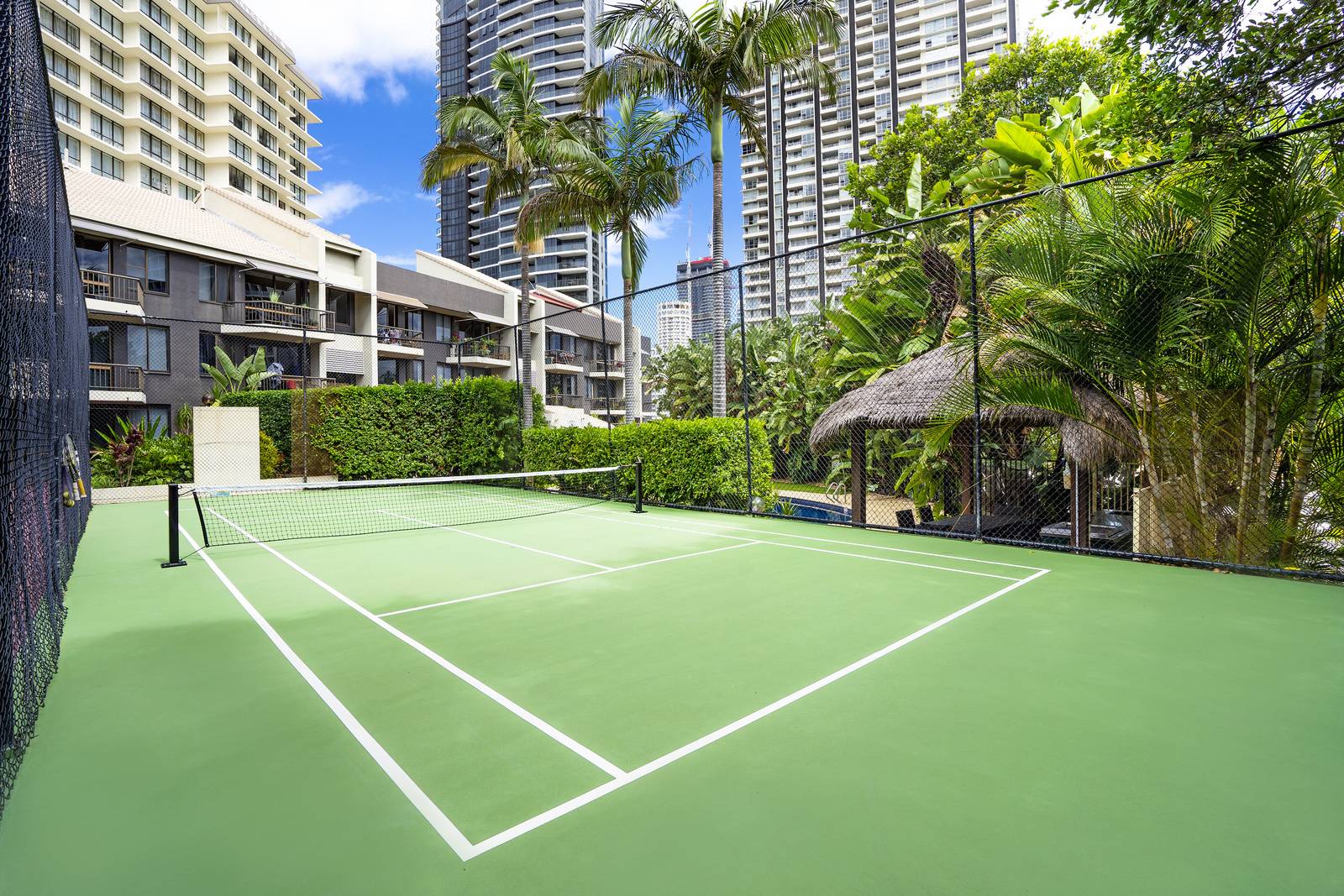 - Common Pool with heated spa, Halfsized Tennis Court and BBQ area